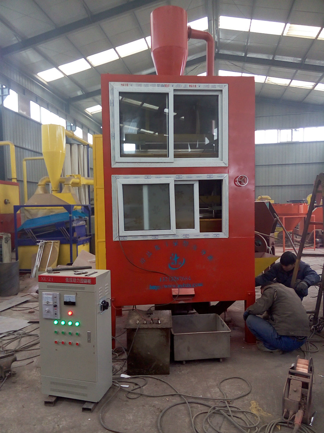 調(diào)速喂料,可快可慢。比起振動(dòng)喂料無噪音產(chǎn)生。鏈條傳動(dòng)裝置,無皮帶長時(shí)間受熱打滑現(xiàn)象,起動(dòng)平穩(wěn),轉(zhuǎn)速均勻。自動(dòng)下料斗和分選設(shè)備內(nèi)部采用全封閉式結(jié)構(gòu),無粉塵污染。設(shè)備自身高2.54米,料倉下料順利。喂料斗高0.7米,長1.1米,寬0.6米,大容量無溢滿現(xiàn)象??捎脕矸蛛x鋁塑板、電子線路板等鋁塑復(fù)合物、銅塑復(fù)合物。
